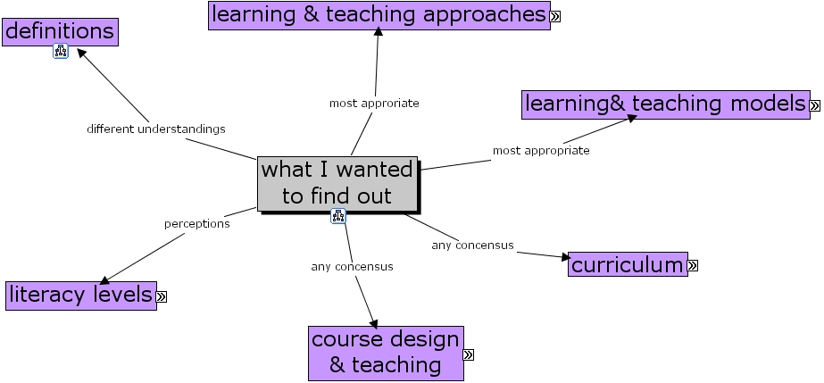 development, curriculum, learning & teaching approaches, designing and teaching, students at different levels, stand alone, who should be involved in what (roles), learning& teaching models, constructivist, situated learning, plagarism, teaching models, skill-based, understanding metadata, integrated, learning & teaching approaches, course design & teaching, perceptions of literacy levels, their own, organising information, definitions, curriculum, literacy levels, what i wanted to find out, research, assessed