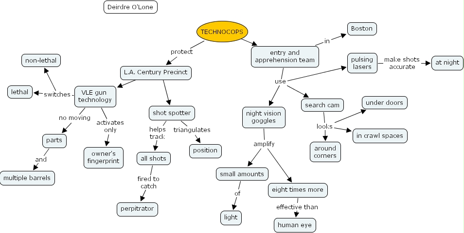 entry and apprehension team in Boston, TECHNOCOPS protect L.A. Century Precinct, L.A. Century Precinct ???? shot spotter, all shots fired to catch perpitrator, shot spotter helps track all shots, TECHNOCOPS ???? entry and apprehension team, night vision goggles amplify small amounts, night vision goggles amplify eight times more, VLE gun technology switches lethal, VLE gun technology switches non-lethal, small amounts of light, shot spotter triangulates position, VLE gun technology no moving parts, pulsing lasers make shots accurate at night, entry and apprehension team use search cam, entry and apprehension team use night vision goggles, entry and apprehension team use pulsing lasers, L.A. Century Precinct ???? VLE gun technology, eight times more effective than human eye, VLE gun technology activates only owner's fingerprint, search cam looks under doors, search cam looks in crawl spaces, search cam looks around corners, parts and multiple barrels