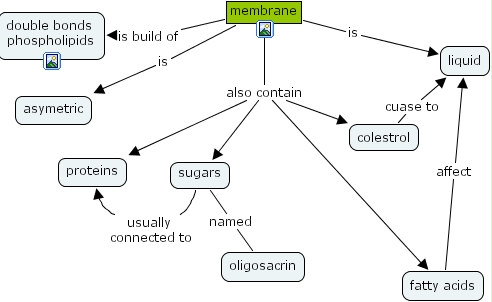 membrane is liquid, colestrol cuase to liquid, fatty acids affect liquid, membrane also contain fatty acids, membrane also contain sugars, membrane also contain colestrol, membrane also contain proteins, sugars named oligosacrin, membrane is build of double bonds phospholipids, membrane is asymetric, sugars usually connected to proteins