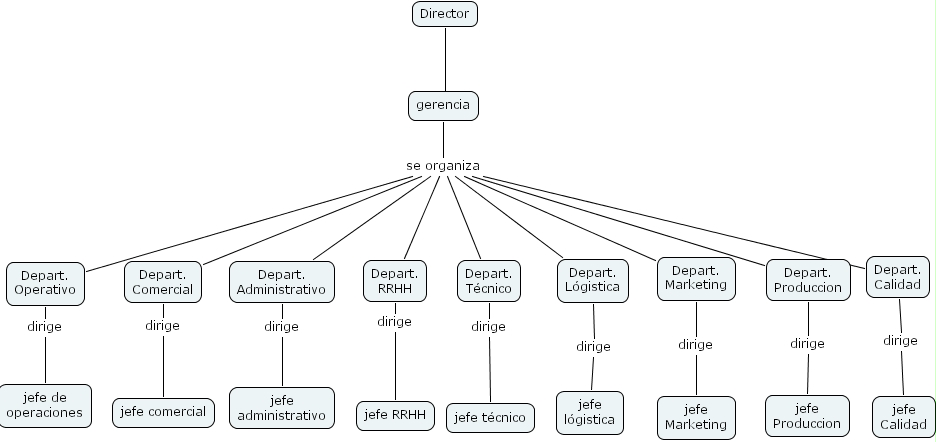Depart. Operativo dirige jefe de operaciones, Depart. Marketing dirige jefe Marketing, Director ???? gerencia, Depart. T�cnico dirige jefe t�cnico, Depart. Comercial dirige jefe comercial, Depart. RRHH dirige jefe RRHH, Depart. L�gistica dirige jefe l�gistica, Depart. Calidad dirige jefe Calidad, gerencia se organiza Depart. Administrativo, gerencia se organiza Depart. Calidad, gerencia se organiza Depart. L�gistica, gerencia se organiza Depart. RRHH, gerencia se organiza Depart. T�cnico, gerencia se organiza Depart. Operativo, gerencia se organiza Depart. Produccion, gerencia se organiza Depart. Marketing, gerencia se organiza Depart. Comercial, Depart. Produccion dirige jefe Produccion, Depart. Administrativo dirige jefe administrativo