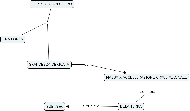 GRANDEZZA DERIVATA da MASSA X ACCELLERAZIONE GRAVITAZIONALE, DELA TERRA la quele � 9,8m/sec, IL PESO DI UN CORPO � UNA FORZA, IL PESO DI UN CORPO � GRANDEZZA DERIVATA, MASSA X ACCELLERAZIONE GRAVITAZIONALE esempio DELA TERRA