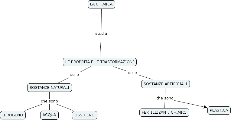 LA CHIMICA studia LE PROPRITA E LE TRASFORMAZIONI, LE PROPRITA E LE TRASFORMAZIONI delle SOSTANZE ARTIFICIALI, SOSTANZE ARTIFICIALI che sono PLASTICA, SOSTANZE ARTIFICIALI che sono FERTILIZZANTI CHIMICI, LE PROPRITA E LE TRASFORMAZIONI delle SOSTANZE NATURALI, SOSTANZE NATURALI che sono IDROGENO, SOSTANZE NATURALI che sono OSSIGENO, SOSTANZE NATURALI che sono ACQUA