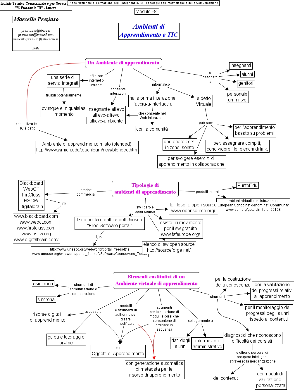 ha la prima interazione faccia-a-interfaccia che consente nel Web interazioni con la comunit�, ha la prima interazione faccia-a-interfaccia che consente nel Web interazioni insegnante-allievo allievo-allievo allievo-ambiente, diagnostici che riconoscono difficolt� dei corsisti e offrono percorsi di recupero intelligenti attraverso la riorganizzazione dei contenuti, diagnostici che riconoscono difficolt� dei corsisti e offrono percorsi di recupero intelligenti attraverso la riorganizzazione dei moduli di valutazione personalizzata, il sito per la didattica dell'Unesco "Free Software portal" link http://www.unesco.org/webworld/portal_freesoft/ e www.unesco.org/webworld/portal_freesoft/Software/Courseware_Tools/, Elementi costitutivi di un Ambiente virtuale di apprendimento strumenti per la creazione di moduli e corsi che consentono di ordinare in sequenza gli Oggetti di Apprendimento, Elementi costitutivi di un Ambiente virtuale di apprendimento strumenti per la creazione di moduli e corsi che consentono di ordinare in sequenza con generazione automatica di metadata per le risorse di apprendimento, Un Ambiente di apprendimento offre con internet o intranet una serie di servizi integrati, Un Ambiente di apprendimento � destinato a personale ammn.vo, Un Ambiente di apprendimento � destinato a genitori, Un Ambiente di apprendimento � destinato a alunni, Un Ambiente di apprendimento � destinato a insegnanti, Elementi costitutivi di un Ambiente virtuale di apprendimento strumenti di comunicazione e collaborazione asincrona, Elementi costitutivi di un Ambiente virtuale di apprendimento strumenti di comunicazione e collaborazione sincrona, Un Ambiente di apprendimento che utilizza le TIC � detto Ambiente di apprendimento misto (blended) http://www.wmich.edu/teachlearn/new/blended.htm, Un Ambiente di apprendimento informatico � detto Virtuale, Un Ambiente di apprendimento informatico ha la prima interazione faccia-a-interfaccia, Elementi costitutivi di un Ambiente virtuale di apprendimento modelli e strumenti di authoring per creare, modificare con generazione automatica di metadata per le risorse di apprendimento, Elementi costitutivi di un Ambiente virtuale di apprendimento modelli e strumenti di authoring per creare, modificare gli Oggetti di Apprendimento, Elementi costitutivi di un Ambiente virtuale di apprendimento collegamento a dati degli alunni, Elementi costitutivi di un Ambiente virtuale di apprendimento collegamento a informazioni amministrative, � detto Virtuale pu� servire per: assegnare compiti; condividere file; elenchi di link;, � detto Virtuale pu� servire per l'apprendimento basato su problemi, � detto Virtuale pu� servire per svolgere esercizi di apprendimento in collaborazione, � detto Virtuale pu� servire per tenere corsi in zone isolate, Blackboard WebCT FirtClass BSCW Digitalbrain link www.blackboard.com www.webct.com www.firstclass.com www.bscw.org www.digitalbrain.com/, Tipologie di ambienti di apprendimento sw libero e open source il sito per la didattica dell'Unesco "Free Software portal", Tipologie di ambienti di apprendimento sw libero e open source esiste un movimento per il sw gratuito www.fsfeurope.org/, Tipologie di ambienti di apprendimento sw libero e open source elenco di sw open source http://sourceforge.net/, Tipologie di ambienti di apprendimento sw libero e open source la filosofia open source www.opensource.org/, Elementi costitutivi di un Ambiente virtuale di apprendimento accesso a risorse digitali di apprendimento, Elementi costitutivi di un Ambiente virtuale di apprendimento accesso a gli Oggetti di Apprendimento, Elementi costitutivi di un Ambiente virtuale di apprendimento accesso a guida e tutoraggio on-line, Elementi costitutivi di un Ambiente virtuale di apprendimento strumenti per la valutazione dei progressi relativi all'apprendimento, Elementi costitutivi di un Ambiente virtuale di apprendimento strumenti diagnostici che riconoscono difficolt� dei corsisti , Elementi costitutivi di un Ambiente virtuale di apprendimento strumenti per la costruzione della conoscenza, Elementi costitutivi di un Ambiente virtuale di apprendimento strumenti per il monitoraggio dei progressi degli alunni rispetto ai contenuti, Tipologie di ambienti di apprendimento prodotti interni ambienti virtuali per l'istruzione di European Schoolnet denominati Community www.eun.org/goto.cfm?did=22108, Tipologie di ambienti di apprendimento prodotti interni PuntoEdu, Un Ambiente di apprendimento consente interazioni insegnante-allievo allievo-allievo allievo-ambiente, Tipologie di ambienti di apprendimento prodotti commerciali Blackboard WebCT FirtClass BSCW Digitalbrain, una serie di servizi integrati fruibili potenzialmente ovunque e in qualsiasi momento