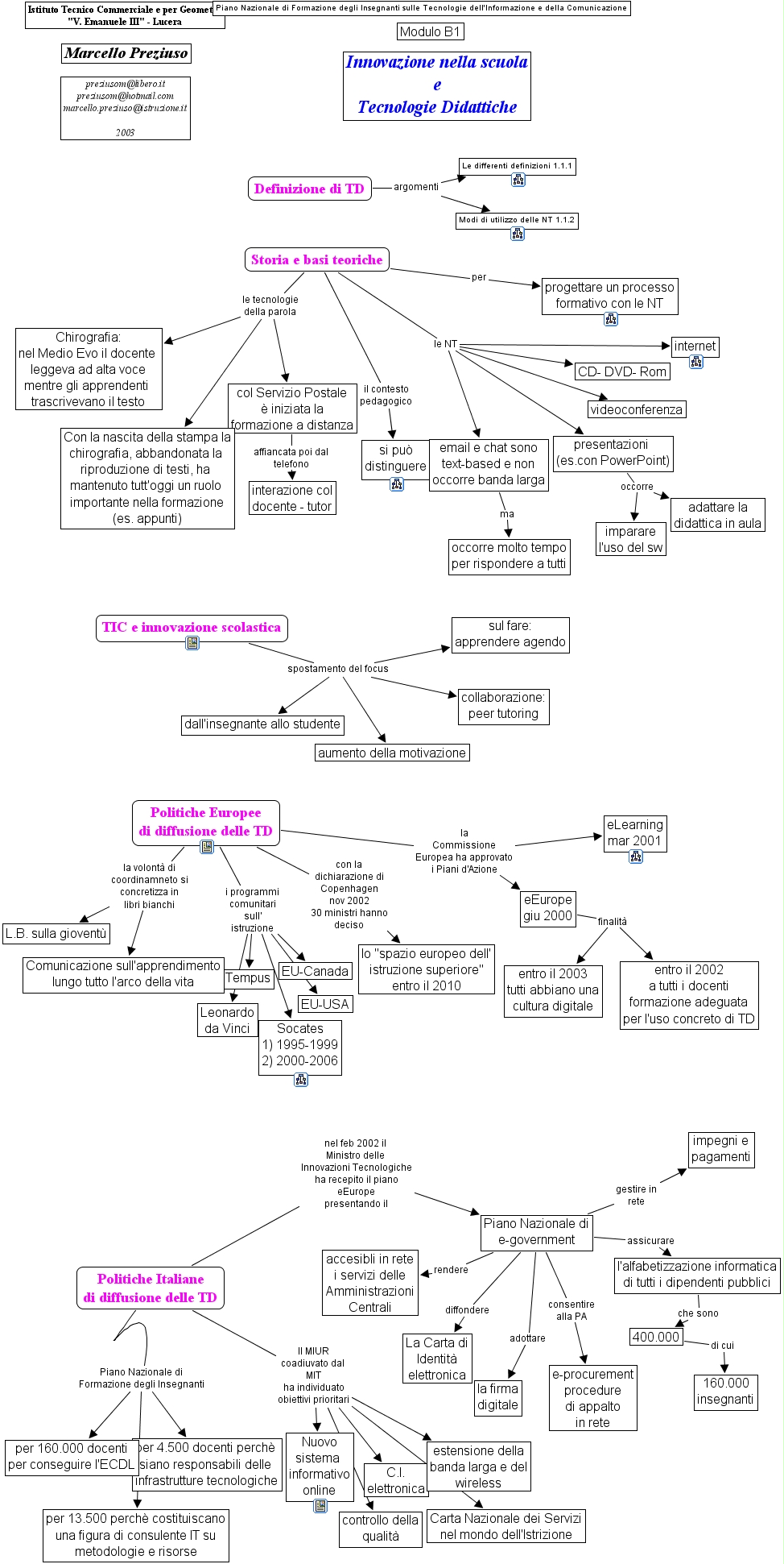 Politiche Italiane di diffusione delle TD nel feb 2002 il Ministro delle Innovazioni Tecnologiche ha recepito il piano eEurope presentando il Piano Nazionale di e-government, Piano Nazionale di e-government adottare la firma digitale, Definizione di TD argomenti Le differenti definizioni 1.1.1, Definizione di TD argomenti Modi di utilizzo delle NT 1.1.2, Politiche Europee di diffusione delle TD la volont� di coordinamneto si concretizza in libri bianchi L.B. sulla giovent�, Politiche Europee di diffusione delle TD la volont� di coordinamneto si concretizza in libri bianchi Comunicazione sull'apprendimento lungo tutto l'arco della vita, Piano Nazionale di e-government assicurare l'alfabetizzazione informatica di tutti i dipendenti pubblici, col Servizio Postale � iniziata la formazione a distanza affiancata poi dal telefono interazione col docente - tutor, Politiche Italiane di diffusione delle TD Il MIUR coadiuvato dal MIT ha individuato obiettivi prioritari Carta Nazionale dei Servizi nel mondo dell'Istrizione, Politiche Italiane di diffusione delle TD Il MIUR coadiuvato dal MIT ha individuato obiettivi prioritari Nuovo sistema informativo online, Politiche Italiane di diffusione delle TD Il MIUR coadiuvato dal MIT ha individuato obiettivi prioritari C.I. elettronica, Politiche Italiane di diffusione delle TD Il MIUR coadiuvato dal MIT ha individuato obiettivi prioritari estensione della banda larga e del wireless, Politiche Italiane di diffusione delle TD Il MIUR coadiuvato dal MIT ha individuato obiettivi prioritari controllo della qualit�, Piano Nazionale di e-government consentire alla PA e-procurement procedure di appalto in rete, Storia e basi teoriche il contesto pedagogico si pu� distinguere, Storia e basi teoriche le tecnologie della parola col Servizio Postale � iniziata la formazione a distanza, Storia e basi teoriche le tecnologie della parola Chirografia: nel Medio Evo il docente leggeva ad alta voce mentre gli apprendenti trascrivevano il testo, Storia e basi teoriche le tecnologie della parola Con la nascita della stampa la chirografia, abbandonata la riproduzione di testi, ha mantenuto tutt'oggi un ruolo importante nella formazione (es. appunti), Politiche Europee di diffusione delle TD con la dichiarazione di Copenhagen nov 2002 30 ministri hanno deciso lo "spazio europeo dell' istruzione superiore" entro il 2010, Piano Nazionale di e-government gestire in rete impegni e pagamenti, Storia e basi teoriche per progettare un processo formativo con le NT, Piano Nazionale di e-government diffondere La Carta di Identit� elettronica, TIC e innovazione scolastica spostamento del focus aumento della motivazione, TIC e innovazione scolastica spostamento del focus dall'insegnante allo studente, TIC e innovazione scolastica spostamento del focus sul fare: apprendere agendo, TIC e innovazione scolastica spostamento del focus collaborazione: peer tutoring, Politiche Italiane di diffusione delle TD Piano Nazionale di Formazione degli Insegnanti per 13.500 perch� costituiscano una figura di consulente IT su metodologie e risorse, Politiche Italiane di diffusione delle TD Piano Nazionale di Formazione degli Insegnanti per 160.000 docenti per conseguire l'ECDL, Politiche Italiane di diffusione delle TD Piano Nazionale di Formazione degli Insegnanti per 4.500 docenti perch� siano responsabili delle infrastrutture tecnologiche, Storia e basi teoriche le NT internet, Storia e basi teoriche le NT CD- DVD- Rom, Storia e basi teoriche le NT presentazioni (es.con PowerPoint), Storia e basi teoriche le NT videoconferenza, Storia e basi teoriche le NT email e chat sono text-based e non occorre banda larga, email e chat sono text-based e non occorre banda larga ma occorre molto tempo per rispondere a tutti, l'alfabetizzazione informatica di tutti i dipendenti pubblici che sono 400.000, 400.000 di cui 160.000 insegnanti, eEurope giu 2000 finalit� entro il 2002 a tutti i docenti formazione adeguata per l'uso concreto di TD, eEurope giu 2000 finalit� entro il 2003 tutti abbiano una cultura digitale, Piano Nazionale di e-government rendere accesibli in rete i servizi delle Amministrazioni Centrali, presentazioni (es.con PowerPoint) occorre imparare l'uso del sw, presentazioni (es.con PowerPoint) occorre adattare la didattica in aula, Politiche Europee di diffusione delle TD i programmi comunitari sull' istruzione Tempus, Politiche Europee di diffusione delle TD i programmi comunitari sull' istruzione EU-Canada, Politiche Europee di diffusione delle TD i programmi comunitari sull' istruzione EU-USA, Politiche Europee di diffusione delle TD i programmi comunitari sull' istruzione Leonardo da Vinci, Politiche Europee di diffusione delle TD i programmi comunitari sull' istruzione Socates 1) 1995-1999 2) 2000-2006, Politiche Europee di diffusione delle TD la Commissione Europea ha approvato i Piani d'Azione eEurope giu 2000, Politiche Europee di diffusione delle TD la Commissione Europea ha approvato i Piani d'Azione eLearning mar 2001