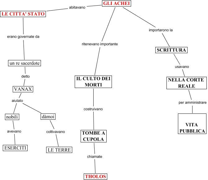 Questa Cmap, creata con IHMC CmapTools, contiene informazioni relative a: ACHEI (Giorgio- Andrea), VANAX aiutato nobili, dàmoi coltivavano LE TERRE, NELLA CORTE REALE per amministrare VITA PUBBLICA, GLI ACHEI ritenevano importante IL CULTO DEI MORTI, TOMBE A CUPOLA chiamate THOLOS, LE CITTA' STATO erano governate da un re sacerdote, un re sacerdote detto VANAX, SCRITTURA usavano NELLA CORTE REALE, IL CULTO DEI MORTI costruivano TOMBE A CUPOLA, VANAX aiutato dàmoi, GLI ACHEI importarono la SCRITTURA, LE CITTA' STATO abitavano GLI ACHEI, nobili avevano ESERCITI