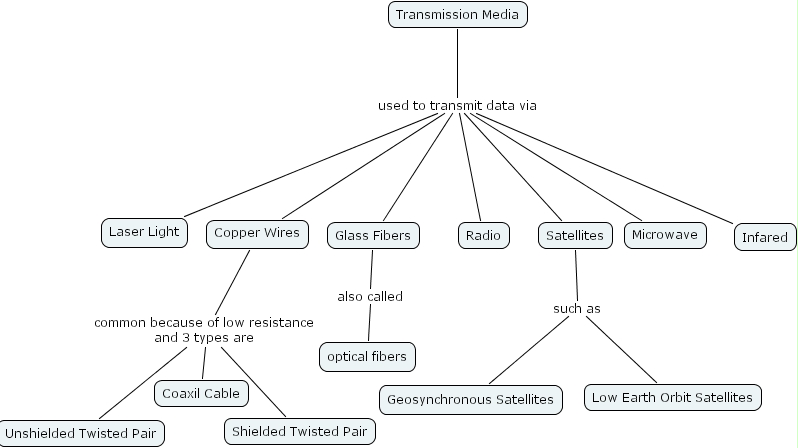 networks4, geosynchronous satellites, microwave, transmission media, low earth orbit satellites, shielded twisted pair, coaxil cable, unshielded twisted pair, laser light, copper wires, optical fibers, glass fibers, satellites, radio, infared