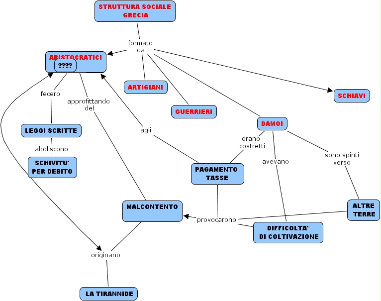 conflitti e malcontento nella societa' greca, ????, schivitu' per debito, difficolta' di coltivazione, leggi scritte, altre terre, malcontento, aristocratici , guerrieri, schiavi, la tirannide, ????, malcontento , pagamento tasse, damoi, struttura sociale grecia, artigiani