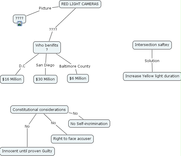 Constitutional considerations No No Self-incrimination, Intersection saftey Solution Increase Yellow light duration, RED LIGHT CAMERAS ???? Who benifits ?, Who benifits ? D.C $16 Million, Who benifits ? Baltimore County $6 Million, Who benifits ? San Diego $30 Million, RED LIGHT CAMERAS Picture ????, Constitutional considerations No Innocent until proven Guilty, Constitutional considerations No Right to face accuser