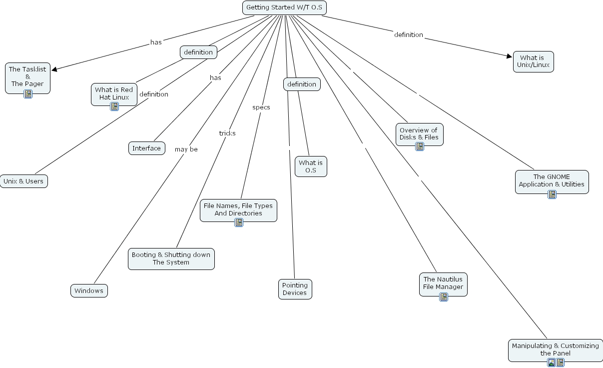 Getting Started W/T O.S may be Windows, Getting Started W/T O.S specs File Names, File Types And Directories, Getting Started W/T O.S definition What is Unix/Linux, Getting Started W/T O.S Pointing Devices, Getting Started W/T O.S The Nautilus File Manager, Getting Started W/T O.S Manipulating & Customizing the Panel, Getting Started W/T O.S has Interface, Getting Started W/T O.S definition Unix & Users, Getting Started W/T O.S Overview of Disks & Files, Getting Started W/T O.S What is Red Hat Linux, Getting Started W/T O.S ???? What is O.S, Getting Started W/T O.S The GNOME Application & Utilities, Getting Started W/T O.S has The Tasklist & The Pager, Getting Started W/T O.S tricks Booting & Shutting down The System