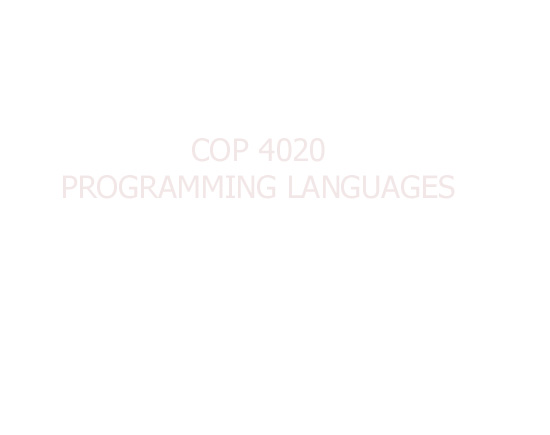 ElementaryAndStructuredDataTypes.cmap Exceptions.doc ExceptionsEvent-drivenProgramming.cmap FunctionalLanguages.cmap ImplementingSubprograms.cmap IntroductionToTheCourse.cmap linkedListAssignment.htm ObjectOrientedLanguages.cmap plbackground.jpg PL Top.cmap ProceduralLanguages.cmap Prolog.cmap Subprograms.cmap SyntaxAndSemantics.cmap Translation.cmap TypesBindingsScope.cmap