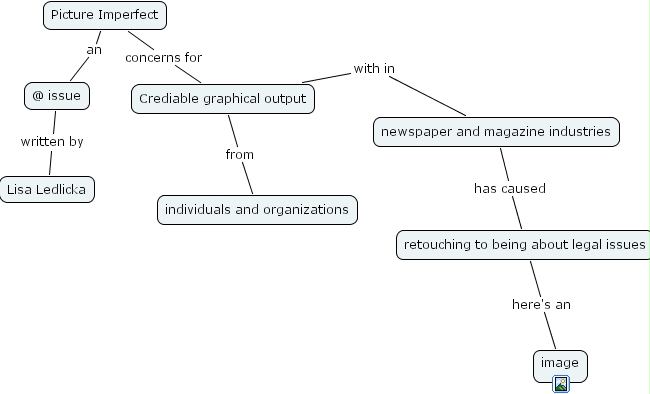Crediable graphical output from individuals and organizations, @ issue written by Lisa Ledlicka, Picture Imperfect an @ issue, retouching to being about legal issues here's an image, Picture Imperfect concerns for Crediable graphical output, Crediable graphical output with in newspaper and magazine industries, newspaper and magazine industries has caused retouching to being about legal issues