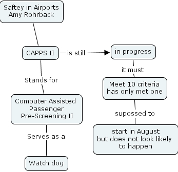 CAPPS II Stands for Computer Assisted Passenger Pre-Screening II, CAPPS II is still in progress, in progress it must Meet 10 criteria has only met one, Meet 10 criteria has only met one supossed to start in August but does not look likely to happen, Saftey in Airports Amy Rohrback ???? CAPPS II, Computer Assisted Passenger Pre-Screening II Serves as a Watch dog