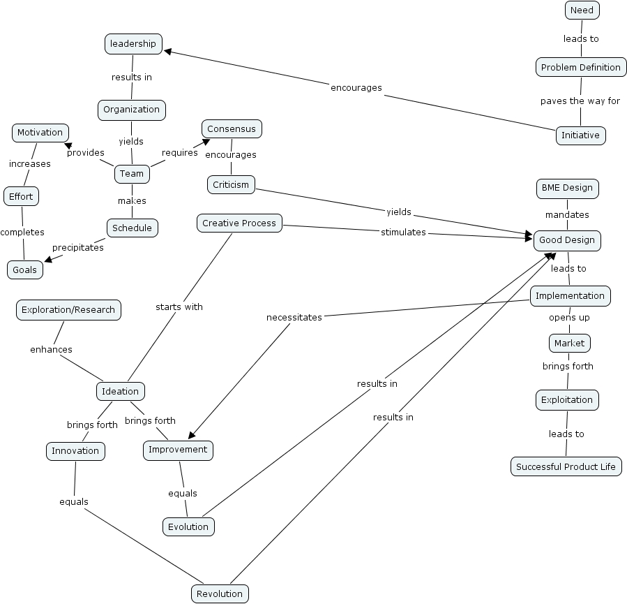 dustin borg apr6, exploration research, leadership, market, effort, problem definition, successful product life, initiative, evolution, need, creative process, organization, consensus, goals, bme design, schedule, ideation, implementation, improvement, innovation, team, revolution, motivation, criticism, exploitation, good design
