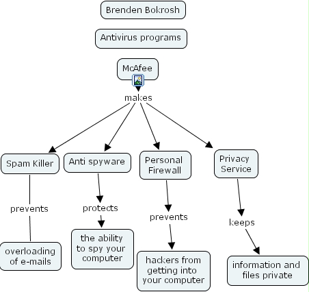 McAfee makes Anti spyware, McAfee makes Spam Killer, McAfee makes Personal Firewall, McAfee makes Privacy Service, Spam Killer prevents overloading of e-mails, Anti spyware protects the ability to spy your computer, Personal Firewall prevents hackers from getting into your computer, Privacy Service keeps information and files private