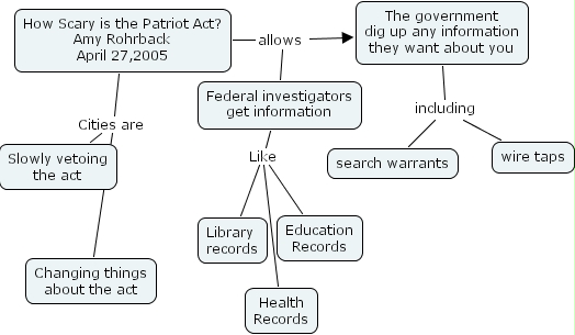 How Scary is the Patriot Act? Amy Rohrback April 27,2005 allows Federal investigators get information, How Scary is the Patriot Act? Amy Rohrback April 27,2005 allows The government dig up any information they want about you, Federal investigators get information Like Library records, Federal investigators get information Like Education Records, Federal investigators get information Like Health Records, The government dig up any information they want about you including search warrants, The government dig up any information they want about you including wire taps, How Scary is the Patriot Act? Amy Rohrback April 27,2005 Cities are Slowly vetoing the act, How Scary is the Patriot Act? Amy Rohrback April 27,2005 Cities are Changing things about the act