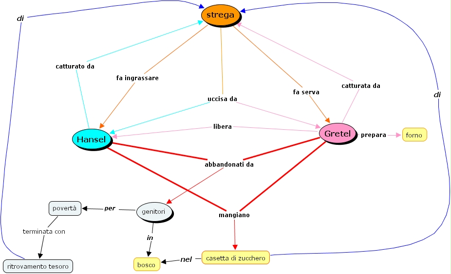 genitori in bosco, povert� terminata con ritrovamento tesoro, Gretel abbandonati da Hansel, Gretel abbandonati da genitori, ritrovamento tesoro di strega, Gretel libera Hansel, Gretel mangiano casetta di zucchero, Gretel mangiano Hansel, strega fa serva Gretel, casetta di zucchero nel bosco, strega uccisa da Gretel, strega uccisa da Hansel, casetta di zucchero di strega, genitori per povert�, strega fa ingrassare Hansel, Gretel prepara forno
