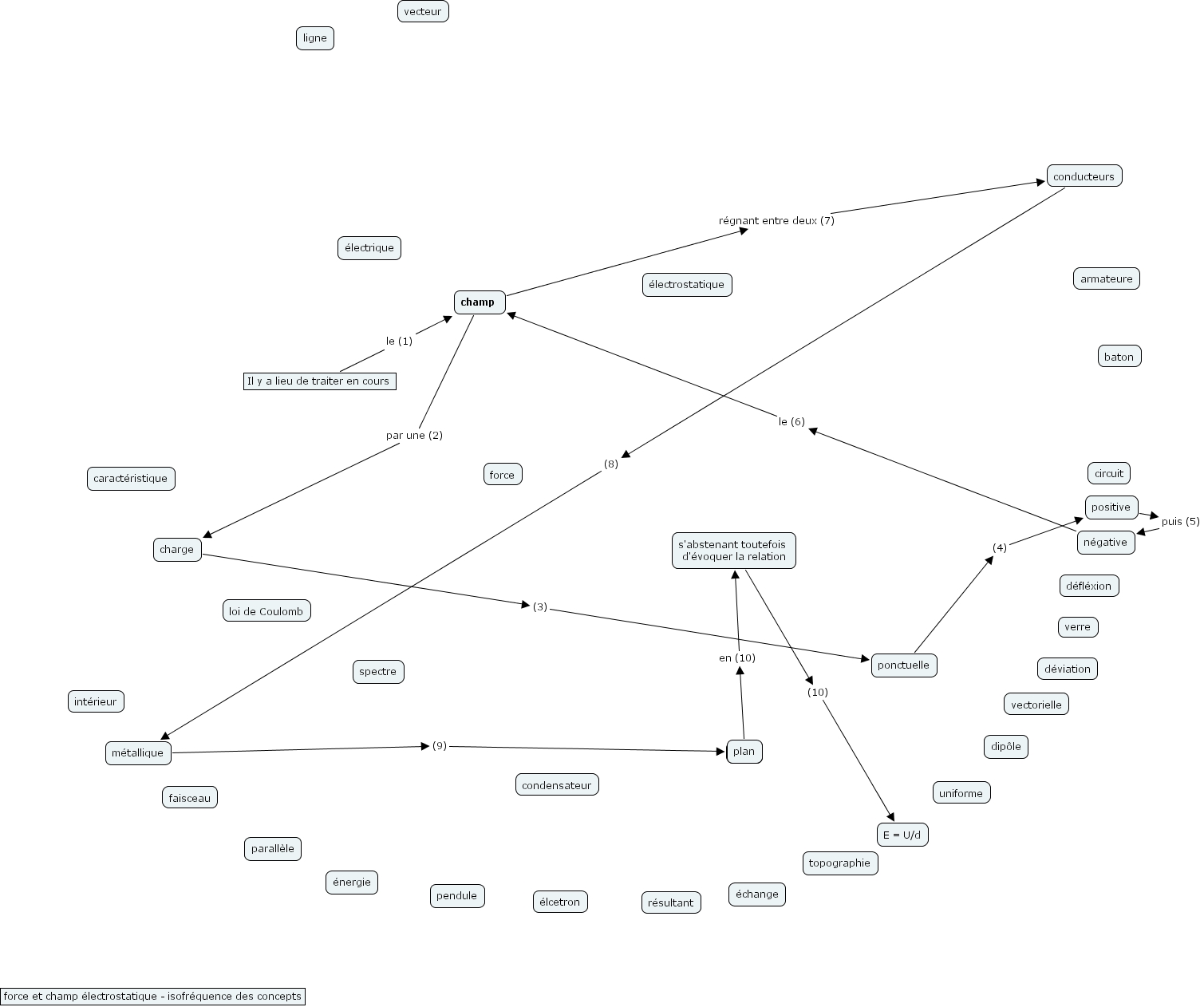ponctuelle (4) positive, m�tallique (9) ????, n�gative le (6) champ, plan en (10) s'abstenant toutefois d'�voquer la relation, Il y a lieu de traiter en cours le (1) champ, champ par une (2) charge, champ r�gnant entre deux (7) conducteurs, positive puis (5) n�gative, s'abstenant toutefois d'�voquer la relation (10) E = U/d, charge (3) ponctuelle, conducteurs (8) m�tallique