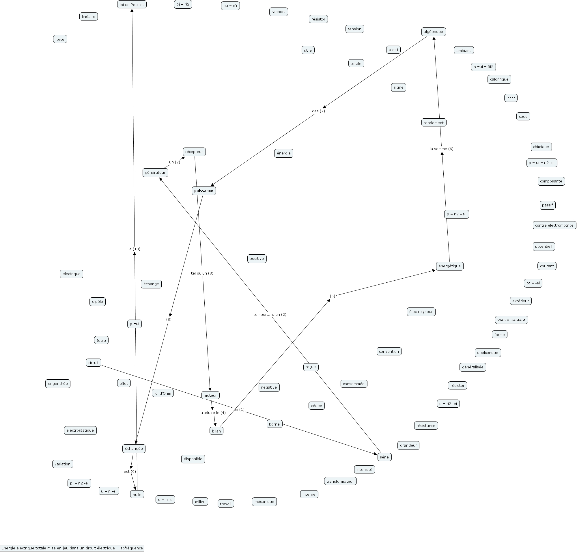 circuit en (1) s�rie, �nerg�tique la somme (6) alg�brique, nulle la (10) loi de Pouillet, puissance (8) �chang�e, �chang�e est (9) nulle, bilan (5) �nerg�tique, alg�brique des (7) puissance, r�cepteur tel qu'un (3) moteur, s�rie comportant un (2) g�n�rateur, g�n�rateur un (2) r�cepteur, moteur traduire le (4) bilan
