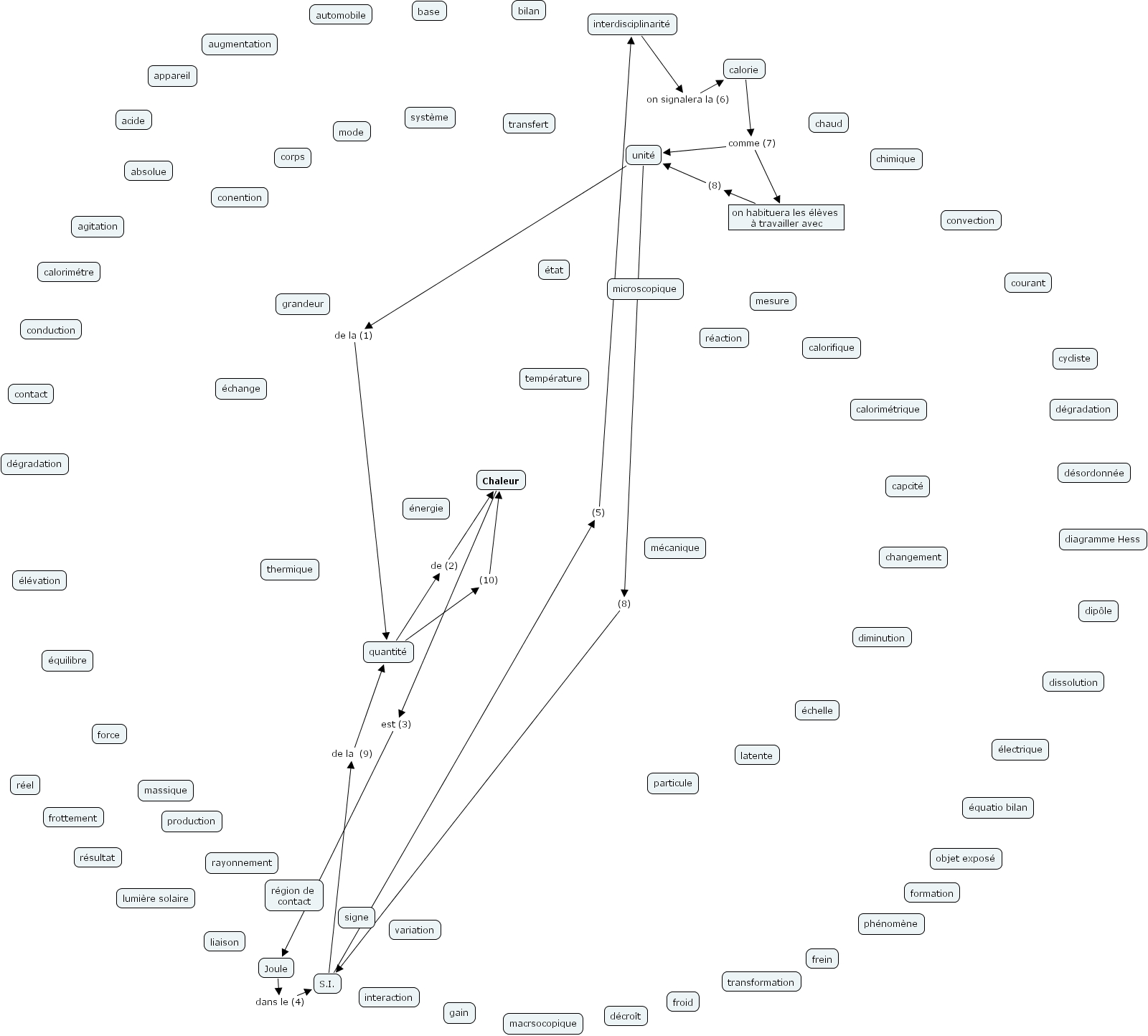 quantit� de (2) Chaleur, S.I. (5) interdisciplinarit�, quantit� (10) Chaleur, unit� de la (1) quantit�, Chaleur est (3) Joule, interdisciplinarit� on signalera la (6) calorie, Joule dans le (4) S.I., unit� (8) S.I., calorie comme (7) unit�, calorie comme (7) on habituera les �l�ves � travailler avec, on habituera les �l�ves � travailler avec (8) unit�, S.I. de la (9) quantit�
