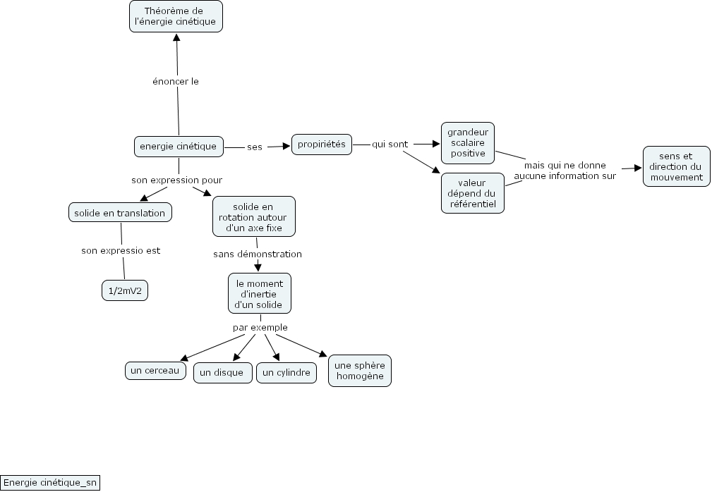 propiri�t�s qui sont grandeur scalaire positive, propiri�t�s qui sont valeur d�pend du r�f�rentiel, valeur d�pend du r�f�rentiel mais qui ne donne aucune information sur sens et direction du mouvement, energie cin�tique ses propiri�t�s, energie cin�tique �noncer le Th�or�me de l'�nergie cin�tique, solide en translation son expressio est 1/2mV2, le moment d'inertie d'un solide par exemple un cylindre, le moment d'inertie d'un solide par exemple un cerceau, le moment d'inertie d'un solide par exemple une sph�re homog�ne, le moment d'inertie d'un solide par exemple un disque, energie cin�tique son expression pour solide en translation, energie cin�tique son expression pour solide en rotation autour d'un axe fixe, solide en rotation autour d'un axe fixe sans d�monstration le moment d'inertie d'un solide, grandeur scalaire positive mais qui ne donne aucune information sur sens et direction du mouvement