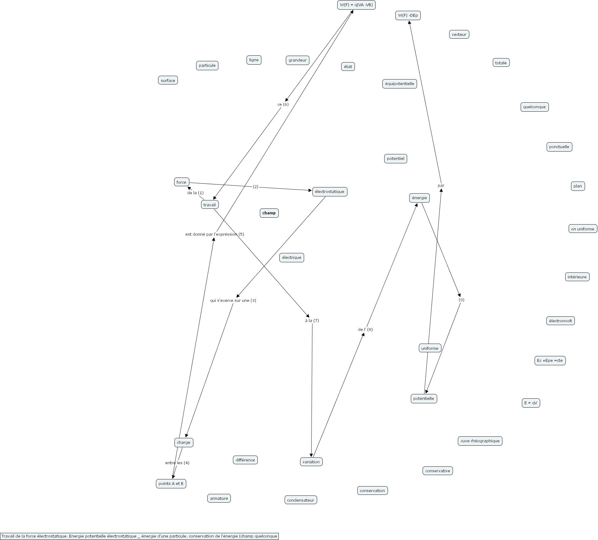 travail � la (7) variation, �nergie (9) potentielle, force (2) �lectrostatique, W(F) = q(VA -VB) ce (6) travail, points A et B est donn� par l'expr�ssion (5) W(F) = q(VA -VB), charge entre les (4) points A et B, travail de la (1) force, variation de l' (8) �nergie, �lectrostatique qui s'exerce sur une (3) charge, potentielle par W(F) -DEp
