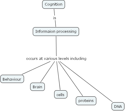 Informaion processing occurs at various levels including DNA, Informaion processing occurs at various levels including Brain, Informaion processing occurs at various levels including Behaviour, Informaion processing occurs at various levels including cells, Informaion processing occurs at various levels including proteins, Cognition is Informaion processing