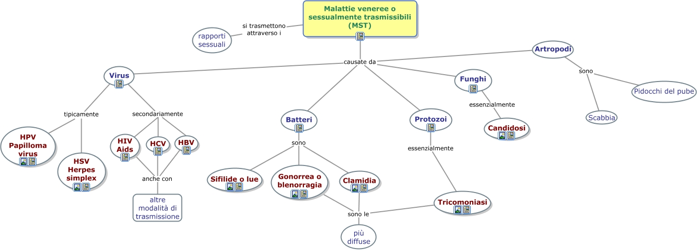 Questa Cmap, creata con IHMC CmapTools, contiene informazioni relative a: Mappa_malattie_veneree, HIV Aids anche con altre modalità di trasmissione, Virus tipicamente HPV Papilloma virus, HBV anche con altre modalità di trasmissione, Tricomoniasi sono le più diffuse, Malattie veneree o sessualmente trasmissibili (MST) causate da Artropodi, HCV anche con altre modalità di trasmissione, Virus secondariamente HCV, Malattie veneree o sessualmente trasmissibili (MST) si trasmettono attraverso i rapporti sessuali, Malattie veneree o sessualmente trasmissibili (MST) causate da Batteri, Batteri sono Clamidia, Virus tipicamente HSV Herpes simplex, Batteri sono Sifilide o lue, Batteri sono Gonorrea o blenorragia, Artropodi sono Scabbia, Protozoi essenzialmente Tricomoniasi, Malattie veneree o sessualmente trasmissibili (MST) causate da Virus, Virus secondariamente HBV, Clamidia sono le più diffuse, Malattie veneree o sessualmente trasmissibili (MST) causate da Protozoi, Artropodi sono Pidocchi del pube