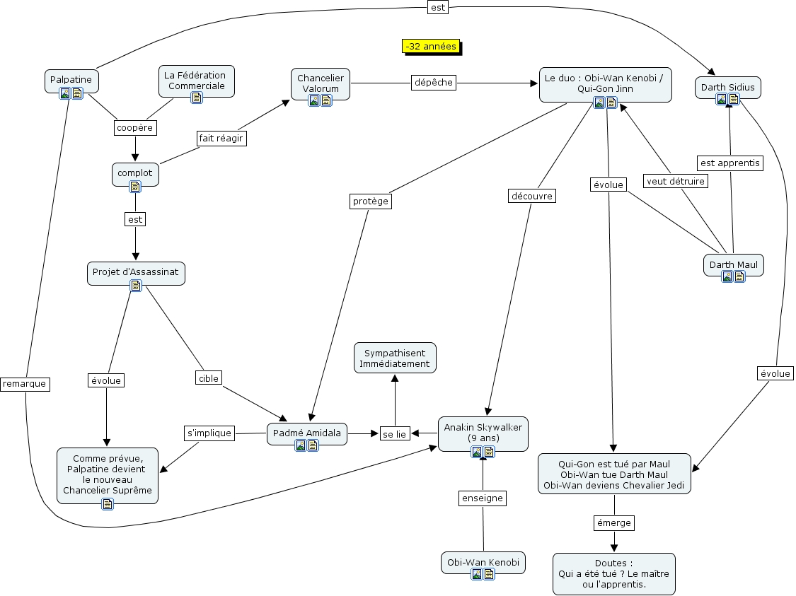 La Menace Fantôme, La Fédération Commerciale coopère complot, Darth Maul veut détruire Le duo : Obi-Wan Kenobi / Qui-Gon Jinn, Palpatine coopère complot, Le duo : Obi-Wan Kenobi / Qui-Gon Jinn protège Padmé Amidala, complot fait réagir Chancelier Valorum, complot est Projet d'Assassinat, Padmé Amidala s'implique Comme prévue, Palpatine devient le nouveau Chancelier Suprême, Qui-Gon est tué par Maul Obi-Wan tue Darth Maul Obi-Wan deviens Chevalier Jedi émerge Doutes : Qui a été tué ? Le maître ou l'apprentis., Darth Maul est apprentis Darth Sidius, Darth Sidius évolue Qui-Gon est tué par Maul Obi-Wan tue Darth Maul Obi-Wan deviens Chevalier Jedi