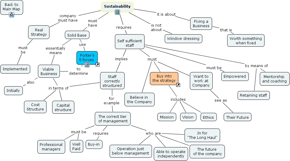 Sustainability, Fixing a Business that is Worth something when fixed, Viable Business also Initially, Staff correctly structured for example The correct tier of management, The correct tier of management must be Well Paid, The correct tier of management who are The future of the company, Self sufficient staff implies Staff correctly structured, Real Strategy must be Implemented, Self sufficient staff must Buy into the strategy, Solid Base use Porter's 5 forces, Viable Business in terms of Cost Structure
