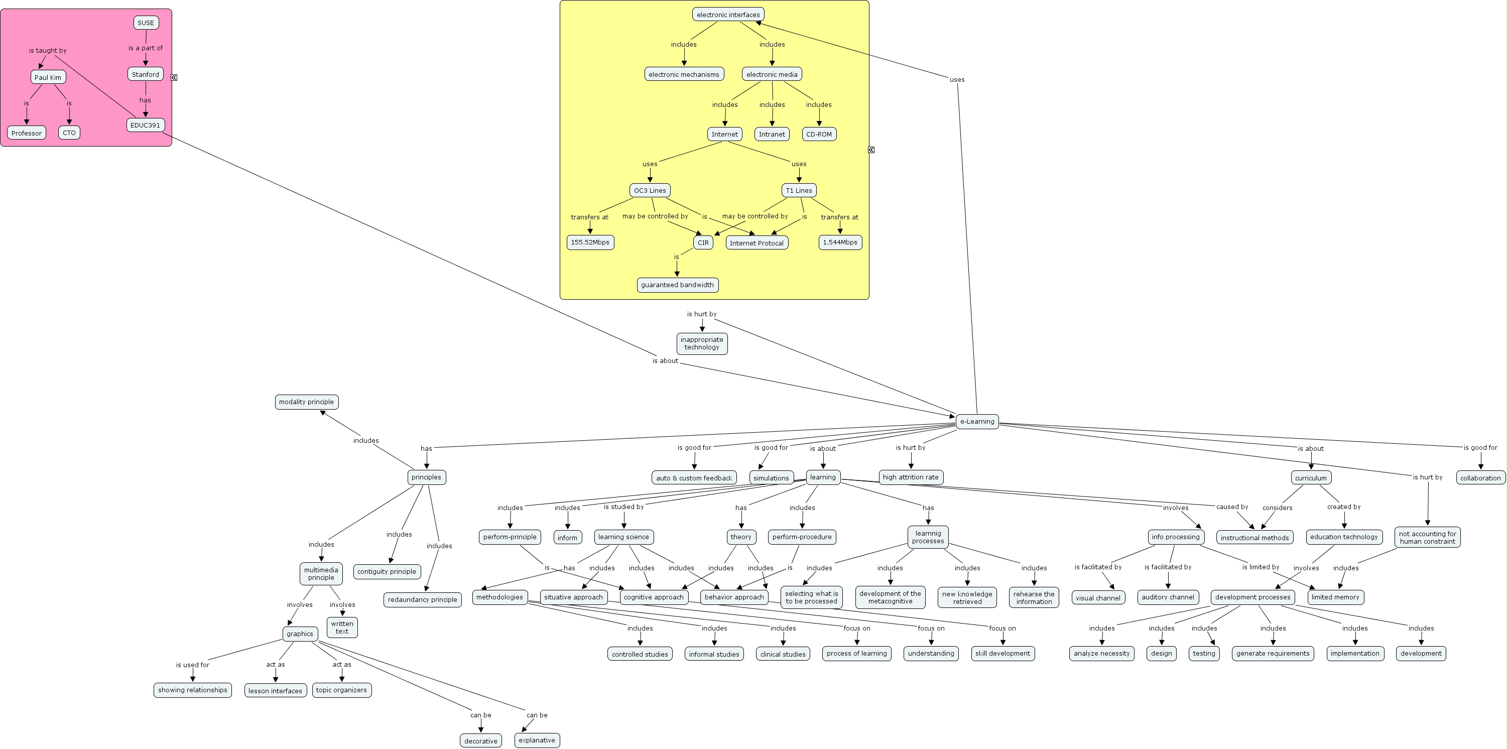 David Tu, not accounting for human constraint includes limited memory, principles includes modality principle, learning involves info processing, multimedia principle involves written text, info processing is facilitated by visual channel, T1 Lines transfers at 1.544Mbps, OC3 Lines is Internet Protocal, learning includes perform-principle, OC3 Lines transfers at 155.52Mbps, learning science includes situative approach
