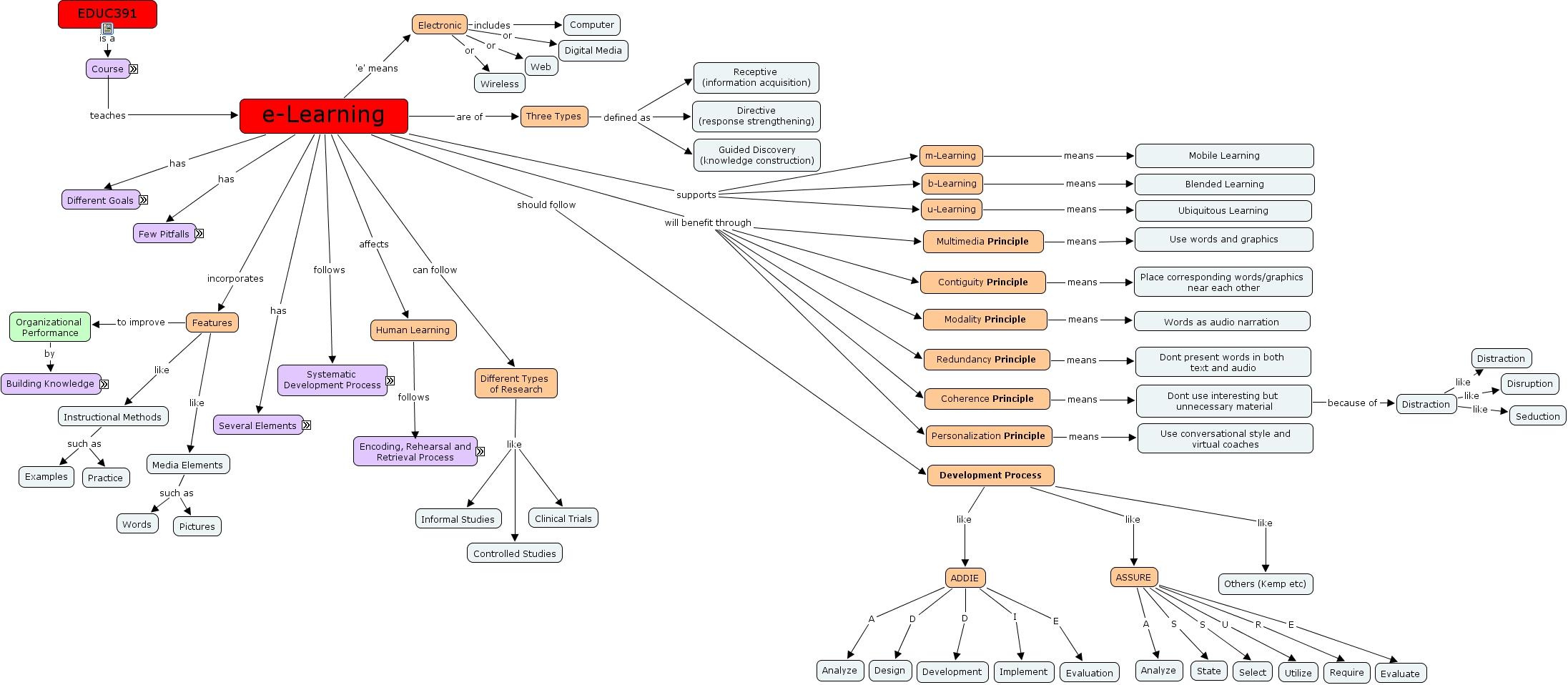 Sri Harsha Kolar (WK7), Features to improve Organizational Performance, e-Learning can follow Different Types of Research, e-Learning will benefit through Multimedia Principle, Elements includes (what?) Instructional Methods, Three Types defined as Guided Discovery (knowledge construction), Modality Principle means Words as audio narration, Different Types of Research like Informal Studies, Pitfalls like High attrition rates, Coherence Principle means Dont use interesting but unnecessary material, ASSURE S Select