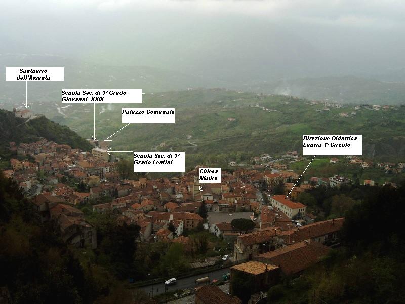 il mio paese, scuole sono infanzia, Lauria ha chiese, chiese sono dell'Assunta, madre in rione inferiore, Lauria è divisa in rione superiore, rione inferiore ha coro ligneo del '400, uffici sono privati, chiese sono madre, montagna è Sirino, Lauria è in Italia
