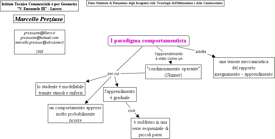 Il paradigma comportamentista, I paradigma comportamentista l'apprendimento è visto come un "condizionamento operante" (Skinner), "condizionamento operante" (Skinner) per cui lo studente è modellabile tramite stimoli e rinforzi, l'apprendimento è graduale cioè è suddiviso in una serie sequenziale di piccoli passi, I paradigma comportamentista adotta una visione meccanicistica del rapporto insegnamento - apprendimento, "condizionamento operante" (Skinner) per cui l'apprendimento è graduale, "condizionamento operante" (Skinner) per cui un comportamento appreso molto probabilmente ricorre, I paradigma comportamentista per cui l'apprendimento è graduale, I paradigma comportamentista per cui un comportamento appreso molto probabilmente ricorre, I paradigma comportamentista per cui lo studente è modellabile tramite stimoli e rinforzi