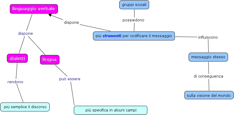 Claudia visione mondo, messaggio stesso di conseguenza sulla visione del mondo, gruppi sociali possiedono più strumenti per codificare il messaggio, linguaggio verbale dispone dialetti, dialetti rendono più semplice il discorso, lingua può essere più specifica in alcuni campi, linguaggio verbale dispone lingua, più strumenti per codificare il messaggio influiscono messaggio stesso, più strumenti per codificare il messaggio dispone linguaggio verbale