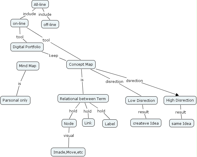 harumi, on-line tool Concept Map, on-line tool Digital Portfolio, Relational between Term hold Node, Mind Map is Parsonal only, All-line include off-line, Relational between Term hold Link, on-line tool Concept Map, All-line include on-line, High Disrection result same Idea, Relational between Term hold Label