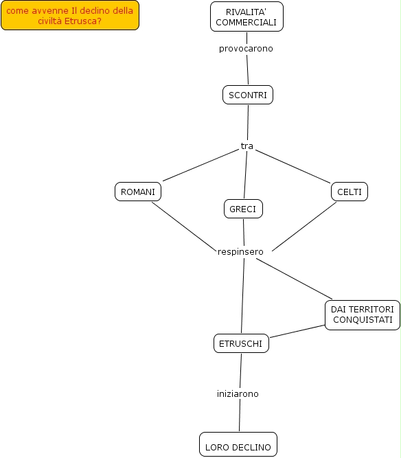 DECLINO CIVILTA' ETRUSCA, RIVALITA' COMMERCIALI provocarono SCONTRI, CELTI respinsero DAI TERRITORI CONQUISTATI, ROMANI respinsero DAI TERRITORI CONQUISTATI, SCONTRI tra ROMANI, ETRUSCHI iniziarono LORO DECLINO, ROMANI respinsero ETRUSCHI, ETRUSCHI ???? DAI TERRITORI CONQUISTATI, GRECI respinsero DAI TERRITORI CONQUISTATI, GRECI respinsero ETRUSCHI, CELTI respinsero ETRUSCHI