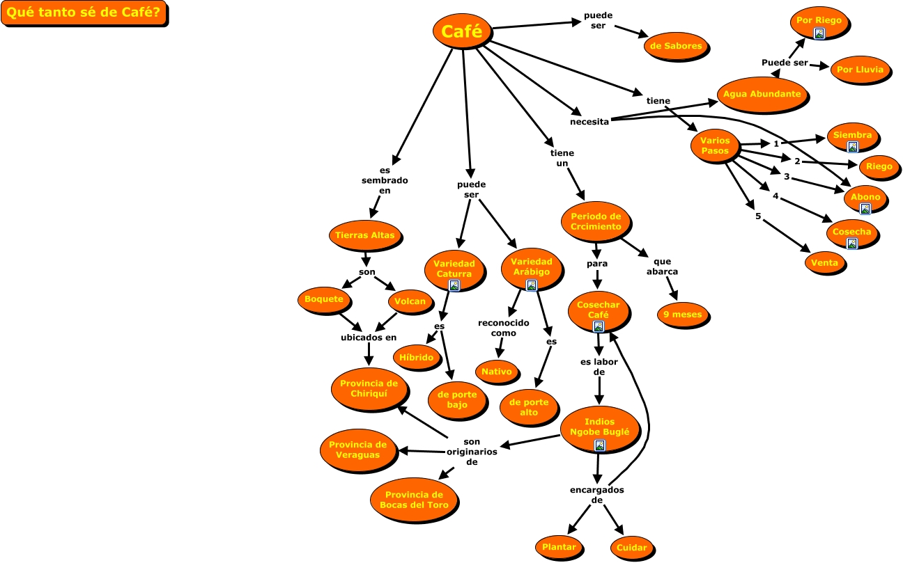 Qué tanto sé de Café, Boquete ubicados en Provincia de Chiriquí, Café tiene Varios Pasos, Periodo de Crcimiento que abarca 9 meses, Indios Ngobe Buglé son originarios de Provincia de Chiriquí, Variedad Caturra es de porte bajo, Periodo de Crcimiento para Cosechar Café, Variedad Caturra es Híbrido, Café necesita Abono, Varios Pasos 3 Abono, Volcan ubicados en Provincia de Chiriquí