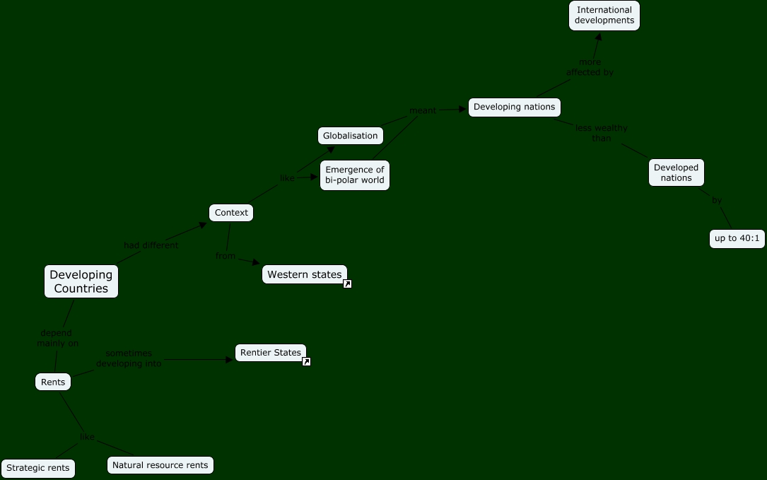 10.4 Rents and Southern Development, Context from Western states, Developing nations more affected by International developments, Rents like Strategic rents, Developing Countries had different Context, Developed nations by up to 40:1, Rents sometimes developing into Rentier States, Developing Countries depend mainly on Rents, Rents like Natural resource rents, Globalisation meant Developing nations, Context like Emergence of bi-polar world