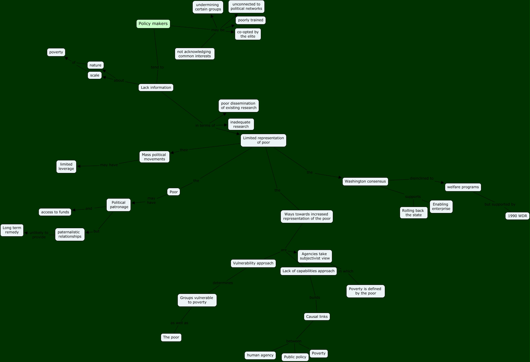 11.4 Representing the poor, Limited representation of poor the Poor, Policy makers may be not acknowledging common interests, Causal links between human agency, Washington consensus supports Rolling back the state, Political patronage but paternalistic relationships, Policy makers may be undermining certain groups, Limited representation of poor the Ways towards increased representation of the poor, Ways towards increased representation of the poor are Agencies take subjectivist view, welfare programs but supported by 1990 WDR, nature of poverty