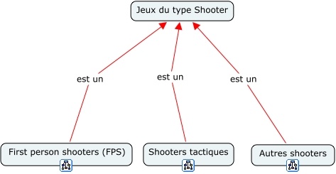 This Concept Map, created with IHMC CmapTools, has information related to: Shooters, First person shooters (FPS) est un Jeux du type Shooter, Shooters tactiques est un Jeux du type Shooter, Autres shooters est un Jeux du type Shooter
