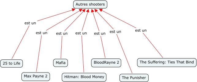 This Concept Map, created with IHMC CmapTools, has information related to: Autres shooters, The Suffering: Ties That Bind est un Autres shooters, Mafia est un Autres shooters, Hitman: Blood Money est un Autres shooters, Max Payne 2 est un Autres shooters, The Punisher est un Autres shooters, BloodRayne 2 est un Autres shooters, 25 to Life est un Autres shooters