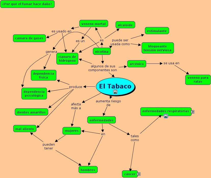 El tabaco, mujeres pueden tener hombres, veneno mortal es usado en camara de gases, enfermedades tales como enfermedades respiratorias, cáncer en laringe, nicotina es alcaloide, El Tabaco produce mal aliento, arcénico se usa en veneno para ratas, nicotina es veneno mortal, veneno mortal es usado en cianuro de hidrógeno, El Tabaco aumenta riesgo de enfermedades