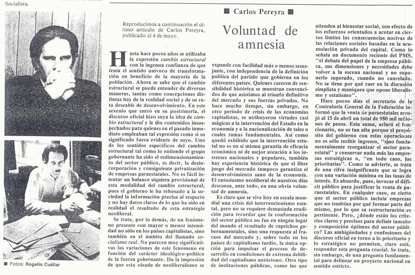 DEFINITIVO, estructuración y cambio social se relaciona con gobierno mexicano, perspectivas teóricas viables son empirismo, perspectivas teóricas viables son consumo cultural, discurso presente a través de críticas, discurso presente a través de posiciones, discurso presente a través de propuestas, discurso presente a través de tópicos, tendencias de investigación cuyo eje es la discurso, Carlos Pereyra Boldrini autor de más de 800 artículos para la prensa mexicana, tendencias de investigación cuyo eje es la prensa