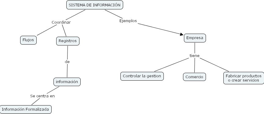 Empresa tiene Controlar la gestion, Empresa tiene Fabricar productos o crear servicios, Empresa tiene Comercio, informaci�n Se centra en Informaci�n Formalizada, SISTEMA DE INFORMACI�N Ejemplos Empresa, SISTEMA DE INFORMACI�N Coordinar Registros, SISTEMA DE INFORMACI�N Coordinar Flujos, Registros de informaci�n
