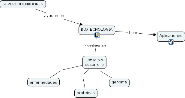 Estudio y desarrollo genoma, SUPERORDENADORES ayudan en BIOTECNOLOGIA, Estudio y desarrollo enfermedades, BIOTECNOLOGIA consiste en Estudio y desarrollo, BIOTECNOLOGIA tiene Aplicaciones, Estudio y desarrollo proteinas