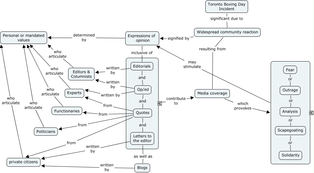 Toronto Boxing Day Incident (Prelim), Expressions of opinion inclusive of Editorials, Op/ed written by Experts, Quotes from Experts, Quotes and Letters to the editor, Quotes from private citizens, private citizens who articulate Personal or mandated values, Functionaries who articulate Personal or mandated values, Op/ed written by Editors & Columnists, Analysis or Scapegoating, Expressions of opinion determined by Personal or mandated values