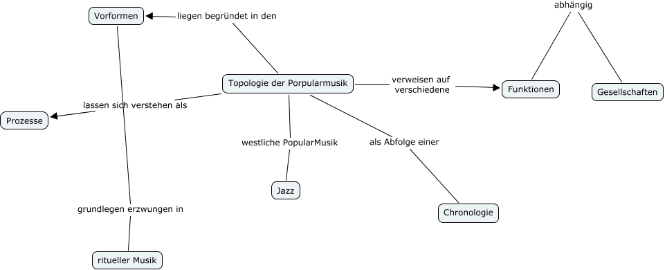 Topoogie der Popular Musik, Topologie der Porpularmusik lassen sich verstehen als Prozesse, Topologie der Porpularmusik verweisen auf verschiedene Funktionen, Topologie der Porpularmusik als Abfolge einer Chronologie, Gesellschaften abhängig Funktionen, Topologie der Porpularmusik liegen begründet in den Vorformen, Vorformen grundlegen erzwungen in ritueller Musik, Topologie der Porpularmusik westliche PopularMusik Jazz