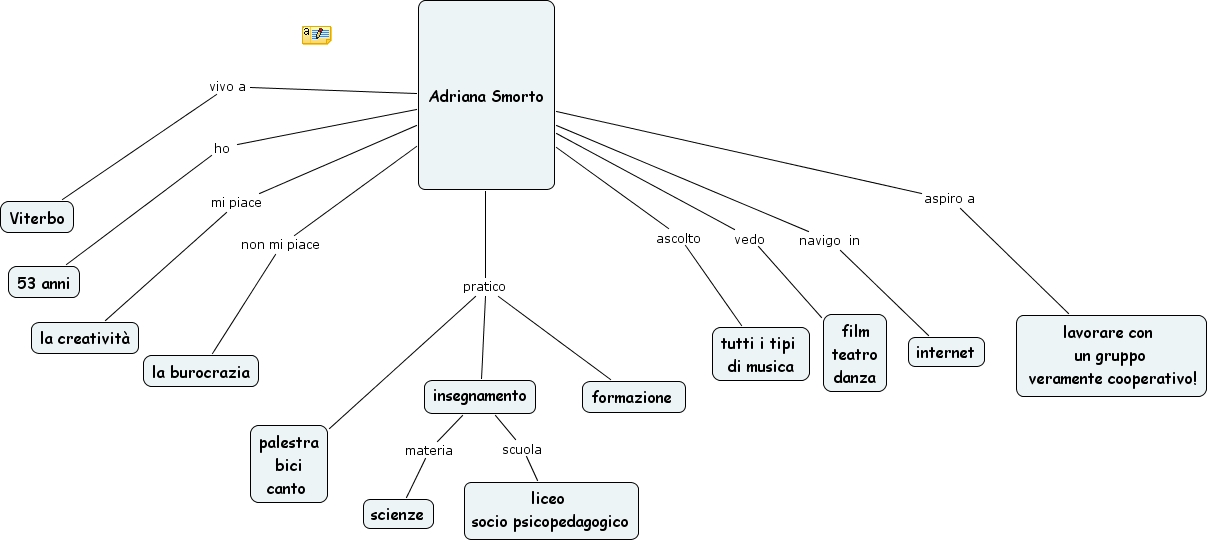 Cmap 1 - Adriana, Adriana Smorto pratico formazione, Adriana Smorto navigo in internet, Adriana Smorto ascolto tutti i tipi di musica, Adriana Smorto vivo a Viterbo, Adriana Smorto vedo film teatro danza, insegnamento scuola liceo socio psicopedagogico, Adriana Smorto mi piace la creatività , Adriana Smorto pratico insegnamento, Adriana Smorto ho 53 anni, Adriana Smorto pratico palestra bici canto