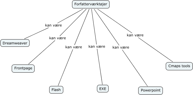 forfatter tools, Forfatterværktøjer kan være Frontpage, Forfatterværktøjer kan være Powerpoint, Forfatterværktøjer kan være EXE, Forfatterværktøjer kan være Dreamweaver, Forfatterværktøjer kan være Flash, Forfatterværktøjer kan være Cmaps tools