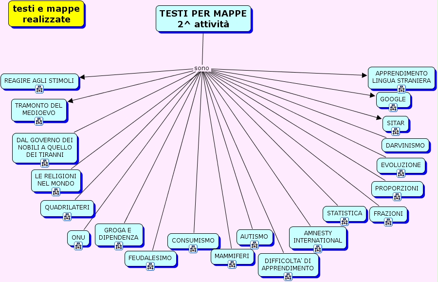testi_e_mappe_realizzate, TESTI PER MAPPE 2^ attività sono LE RELIGIONI NEL MONDO, TESTI PER MAPPE 2^ attività sono ONU, TESTI PER MAPPE 2^ attività sono AMNESTY INTERNATIONAL, TESTI PER MAPPE 2^ attività sono EVOLUZIONE, TESTI PER MAPPE 2^ attività sono REAGIRE AGLI STIMOLI, TESTI PER MAPPE 2^ attività sono STATISTICA, TESTI PER MAPPE 2^ attività sono APPRENDIMENTO LINGUA STRANIERA, TESTI PER MAPPE 2^ attività sono DAL GOVERNO DEI NOBILI A QUELLO DEI TIRANNI, TESTI PER MAPPE 2^ attività sono TRAMONTO DEL MEDIOEVO, TESTI PER MAPPE 2^ attività sono FEUDALESIMO